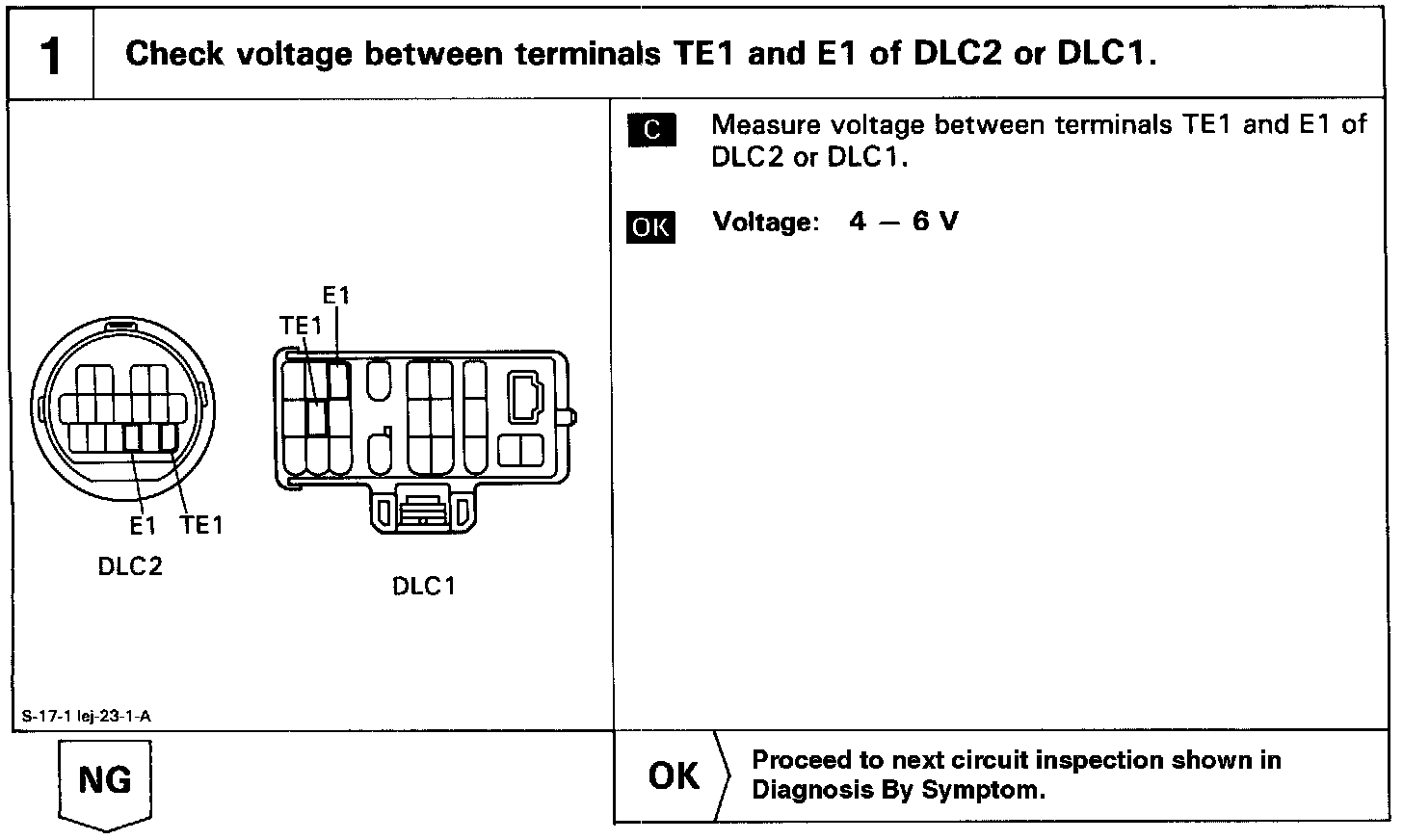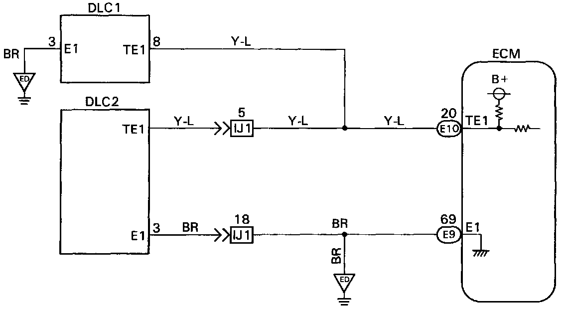 The ECM displays diagnostic trouble codes using the O/D OFF indicator light when terminals TE1 and E1 of the