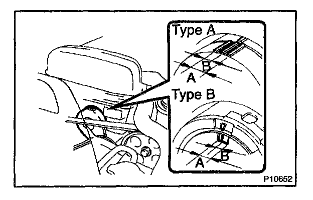 Check that arrow mark on belt tensioner falls within area A in Fig. 16. If new belt is installed, it should be within area B.