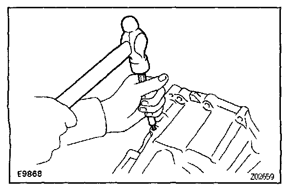 b. Using a pin punch and hammer, drive out the slotted spring pin
