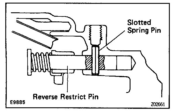 Turn and push the reverse restrict pin by hand. Check for smooth operation.