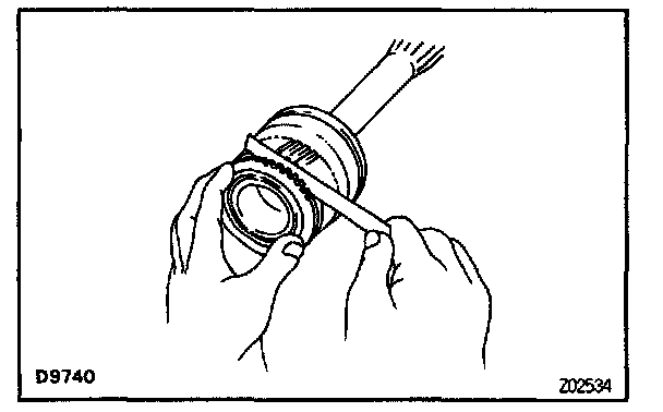 d. Using a feeler gauge, measure the clearance between the synchronizer ring back and gear spline end.