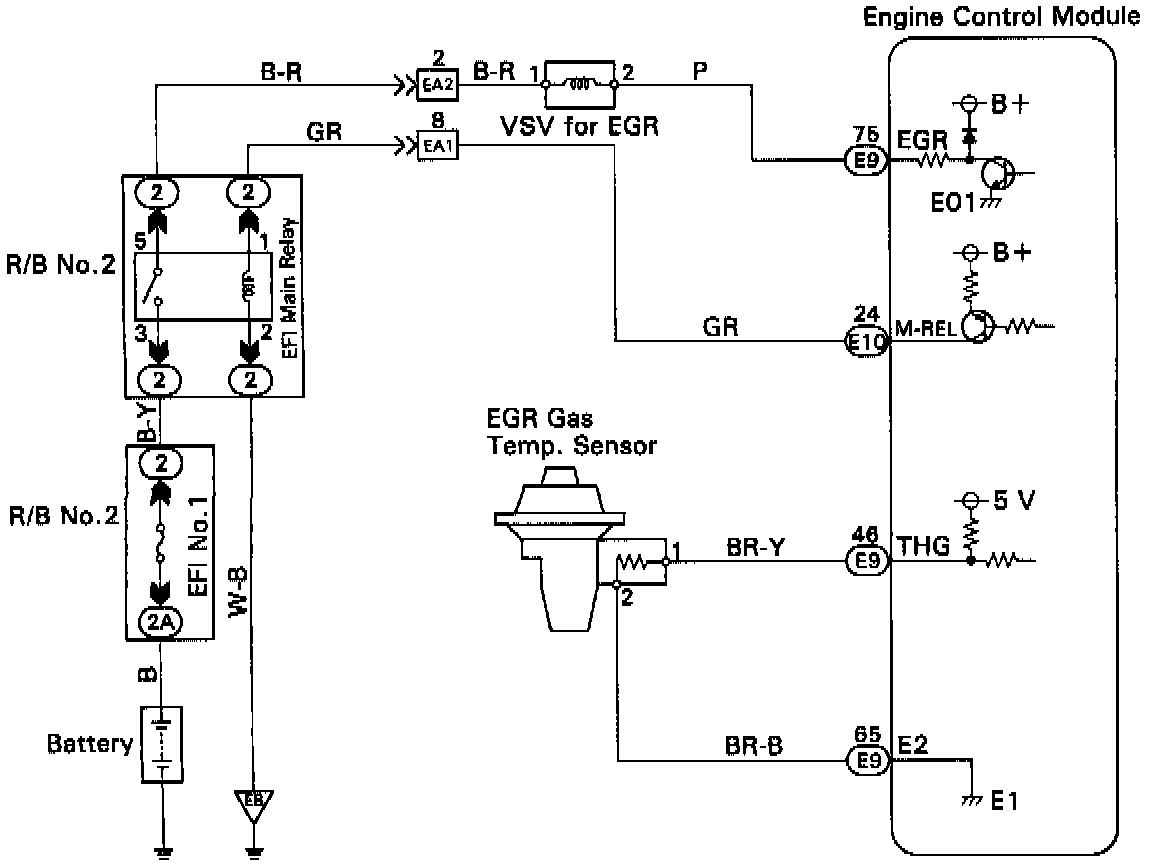 3. CHECK FOR OPEN AND SHORT IN HARNESS AND CONNECTOR BETWEEN EFI MAIN RELAY AND VSV FOR EGR. CHECK FOR OPEN AND SHORT IN HARNESS AND CONNECTOR BETWEEN VSV FOR EGR AND ECM.
