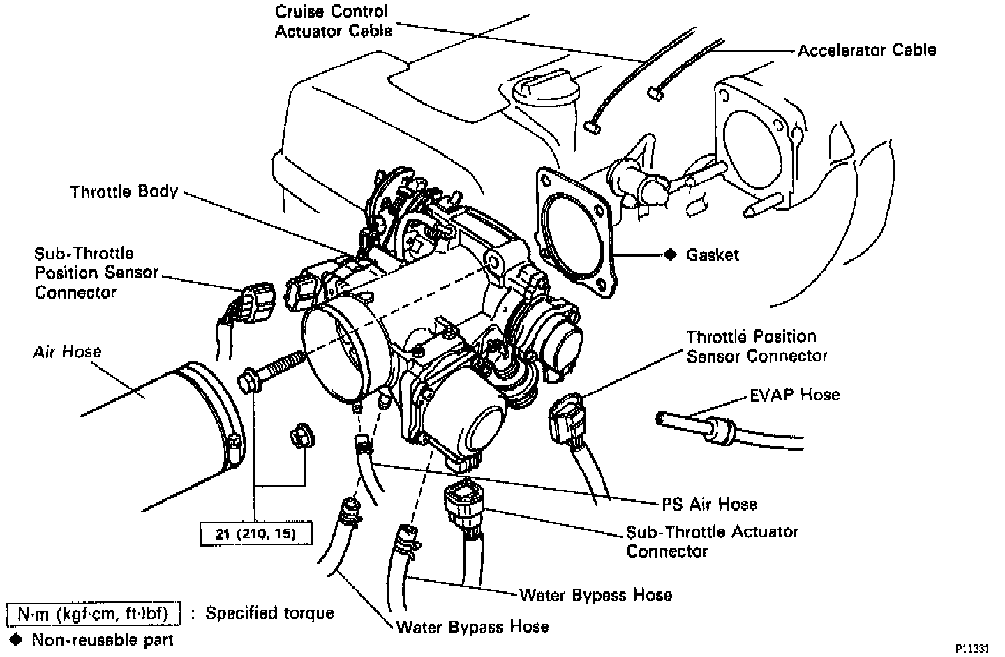(d) Disconnect the following hoses from the throttle body, and remove the throttle body:
