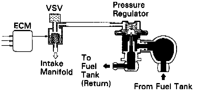 The ECM turns on a vacuum switching valve (VSV) to draw the air into the diaphragm chamber of the pressure regulator if it detects that the temperature of the engine coolant is too high during engine starting.