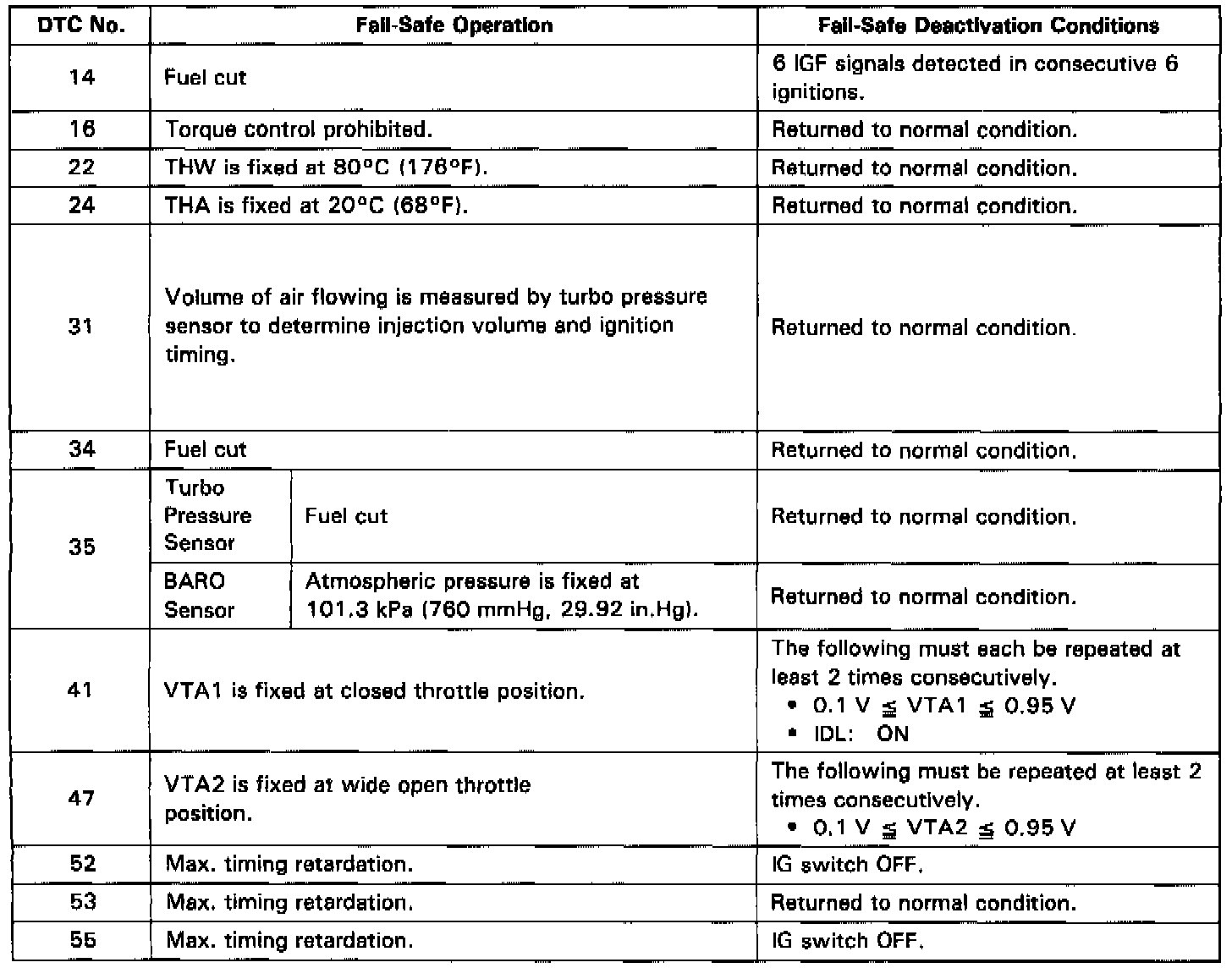 If there is trouble with the program in the ECM and the ignition signals (IGT) are not output from microcomputer, the ECM controls fuel injection and ignition timing at predetermined levels as a back-up function to make it possible to continue to operate the vehicle.