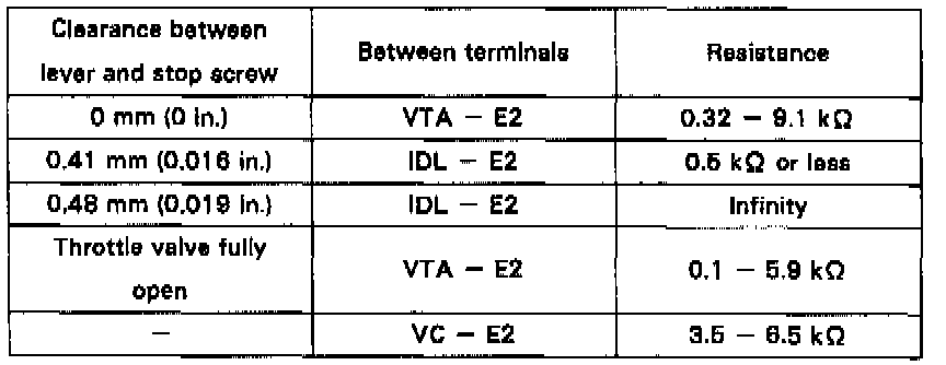 (b) Insert a 0.41 mm (0.016 in.) or 0.48 mm (0.019 in.) feeler gauge between the throttle stop screw and throttle valve gear.