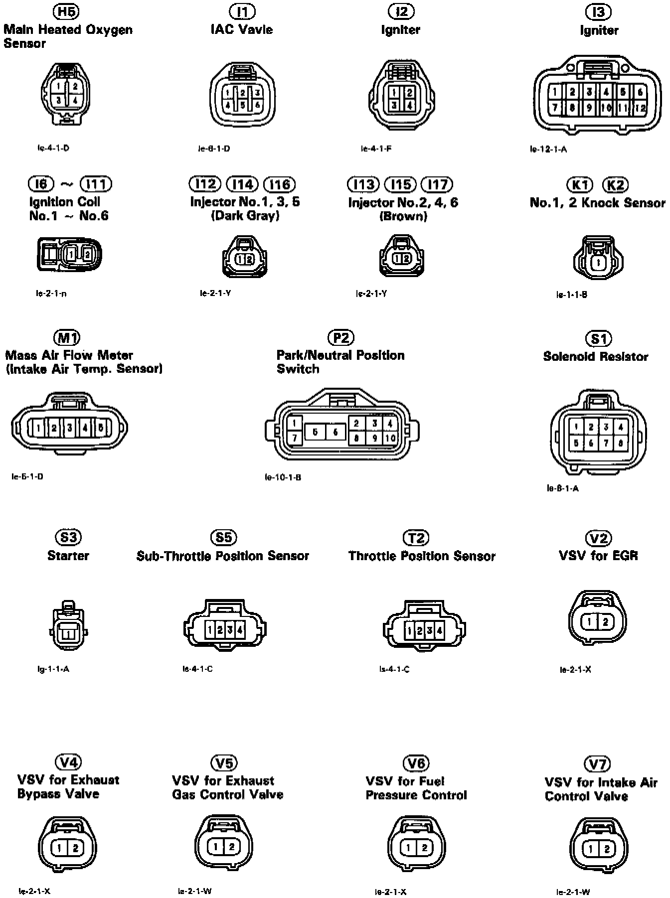 Fuel Injectors,o2 Sensor, Igniter, MAF Meter, PNP Switch, Knock Sensor, Throttle Position Sensors, IAC Valve, VSV's: