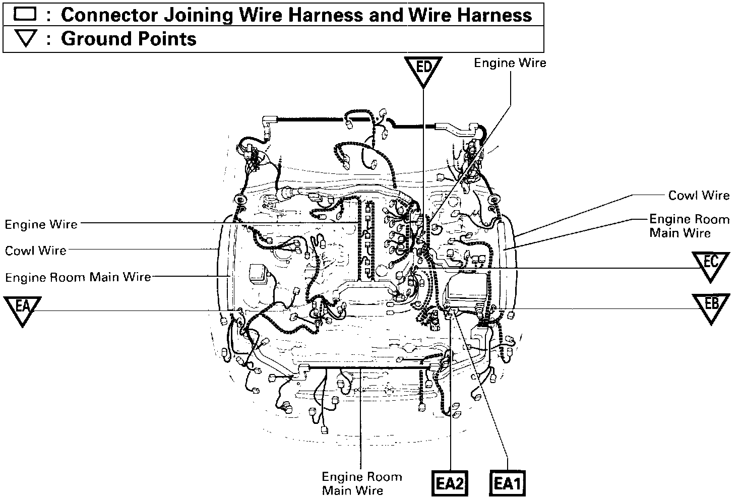 Location Of Connector Joining Wire Harness And Wire Harness, Ground Points (Fig 32):