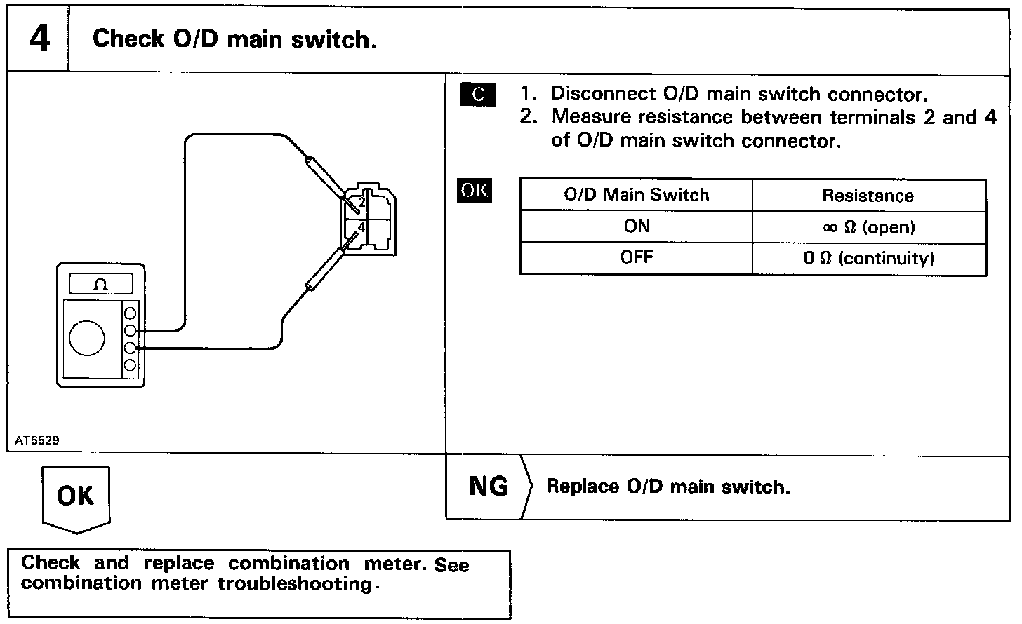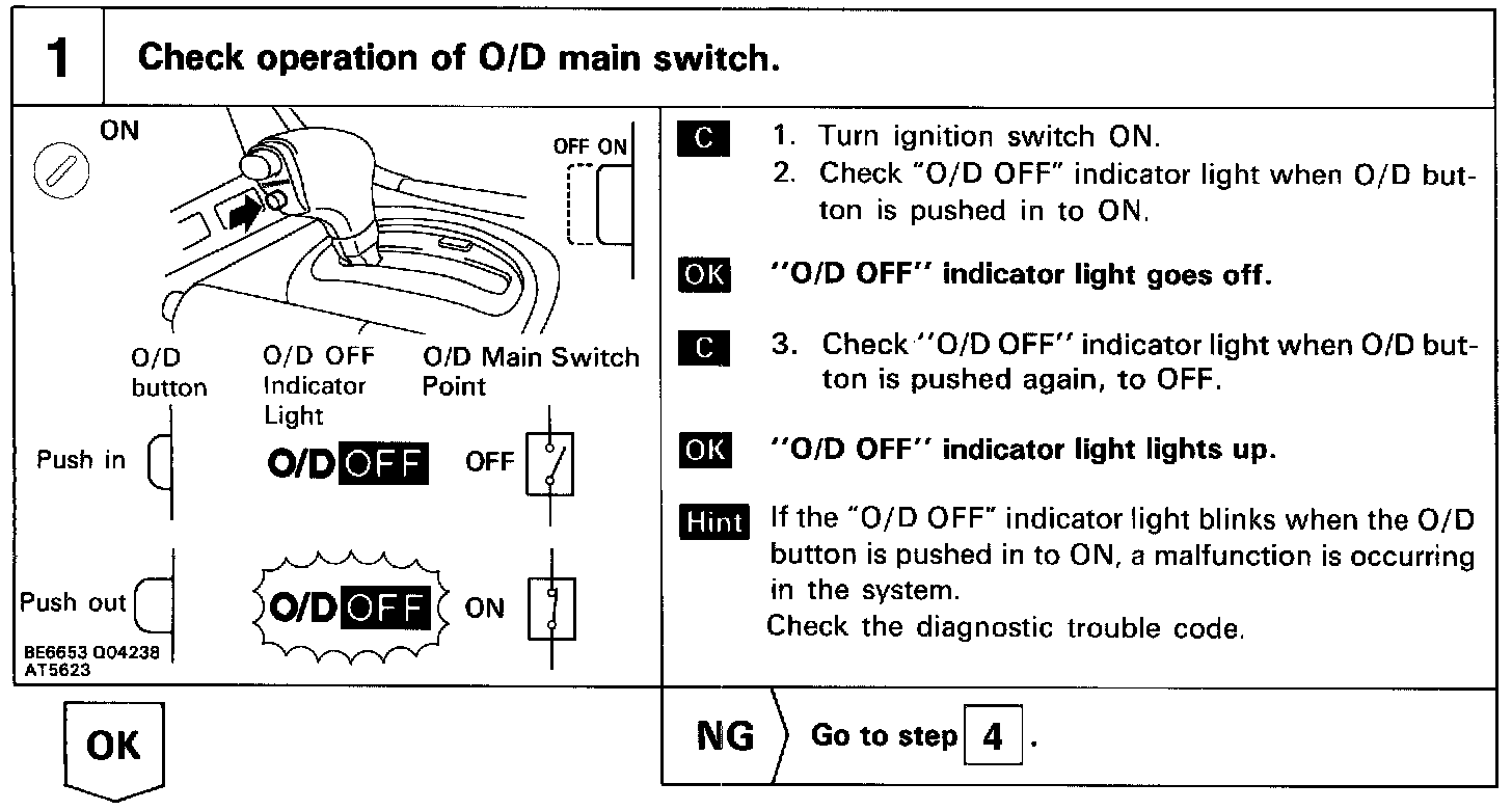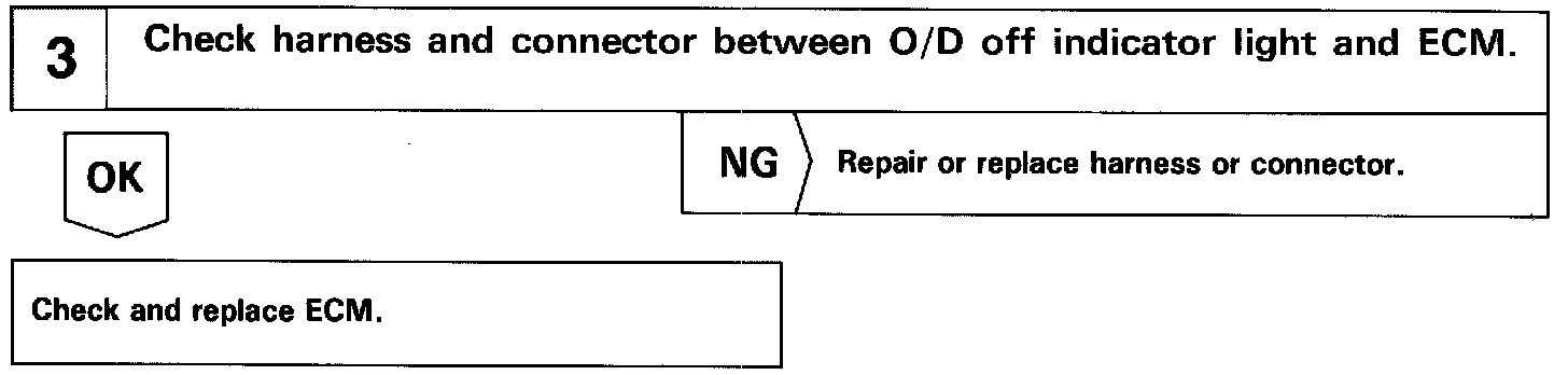 If "O/D OFF" indicator light does not light up: