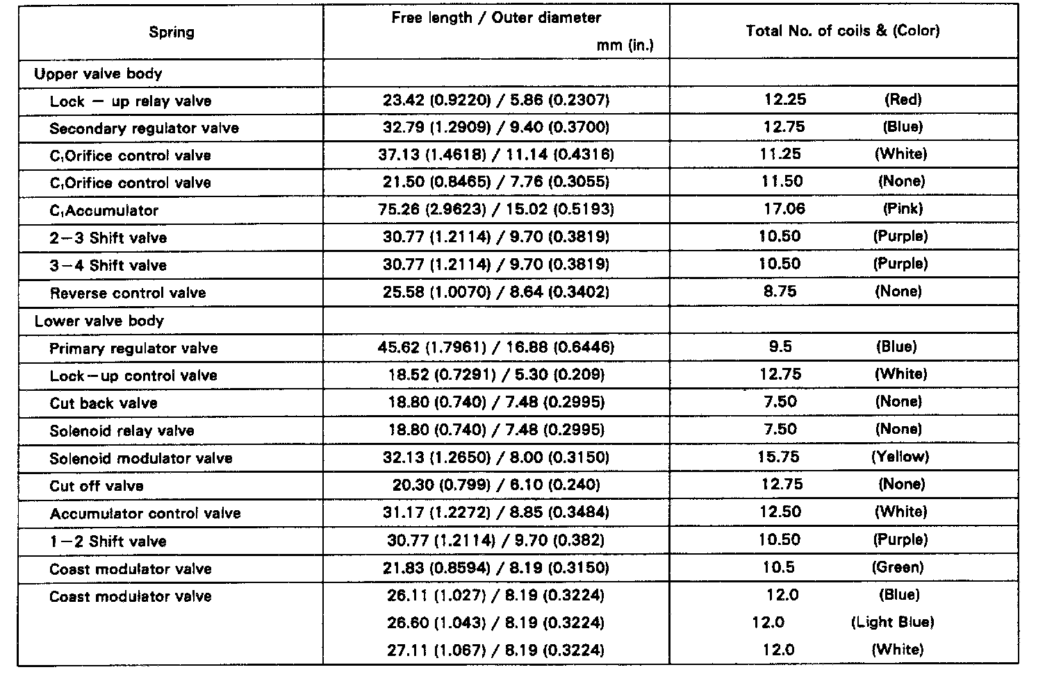 Valve Body Springs: