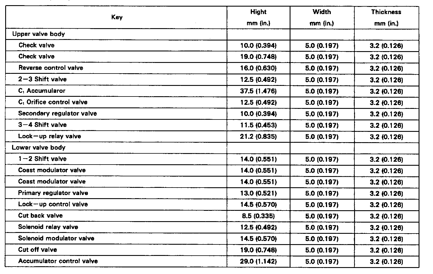 Valve Body Keys:
