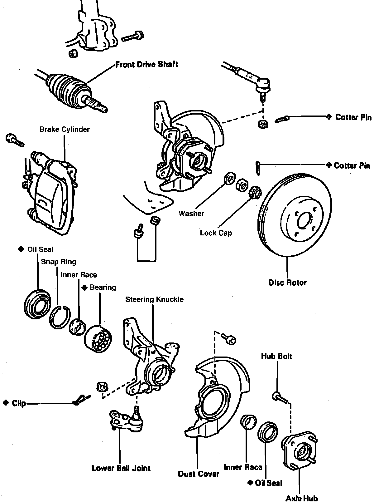 Fig. 4 Exploded View Of Axle Hub & Steering Knuckle.: