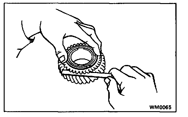 If the clearance is less than the limit, replace the synchronizer ring and gear cone by applying a small amount of fine lapping compound.