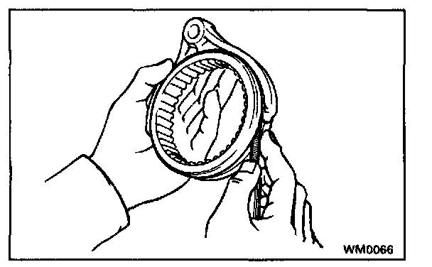b. Check the braking effect of the synchronizer ring. Turn the synchronizer ring in one direction while pushing it to the gear cone and check that the ring is locked.