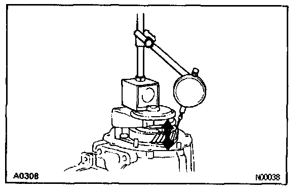 Using a dial indicator, measure the thrust clearance.