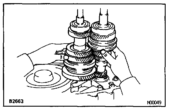 HINT: If it is difficult to remove the snap rings, pull up the shafts.