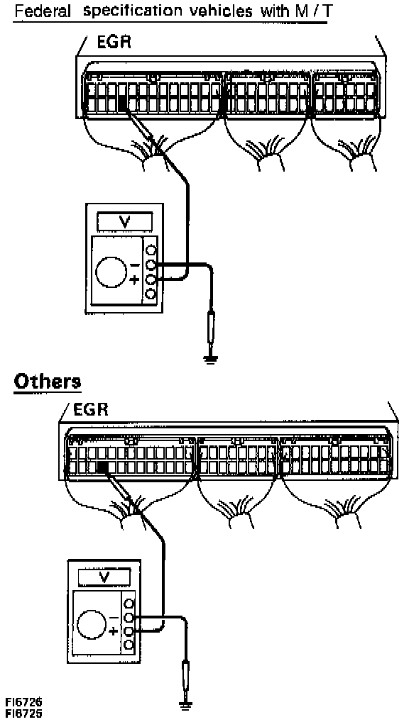 - Measure voltage between terminal EGR of ECM connector and body ground.