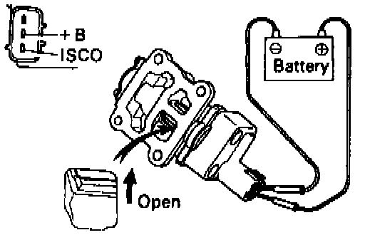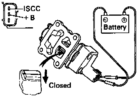 INSPECTION1. CONNECT THE POSITIVE (+) LEAD FROM THE BATTERY TO TERMINAL +B AND NEGATIVE (-) LEAD TO TERMINAL ISCC, AND CHECK THAT THE VALVE IS CLOSED.