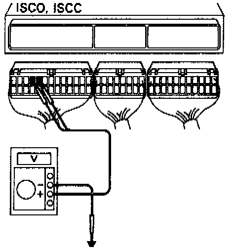- Measure voltage between terminals ISCO, ISCC of ECM connector and body ground.