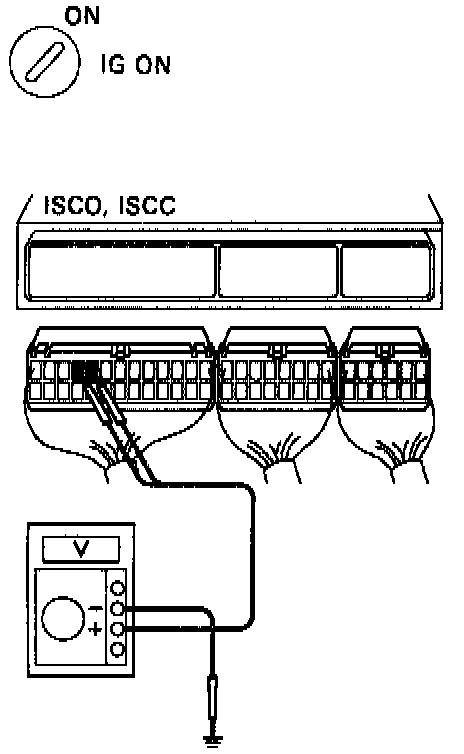 - Measure voltage between terminals ISCO, ISCC of ECM connector and body ground.