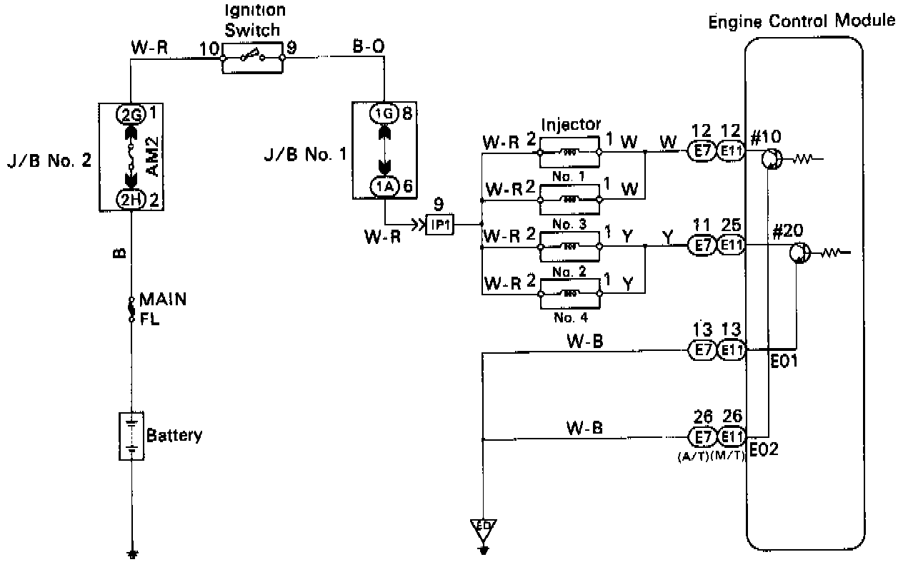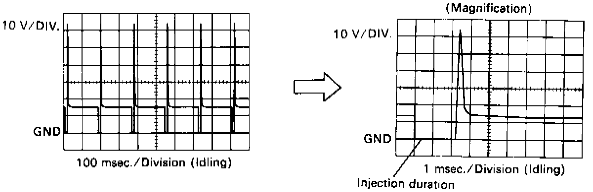 - With the engine idling measure waveform between terminals #10, #20 and E01 of ECM.
