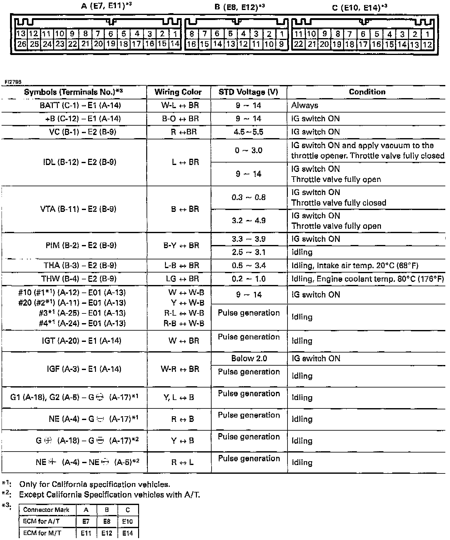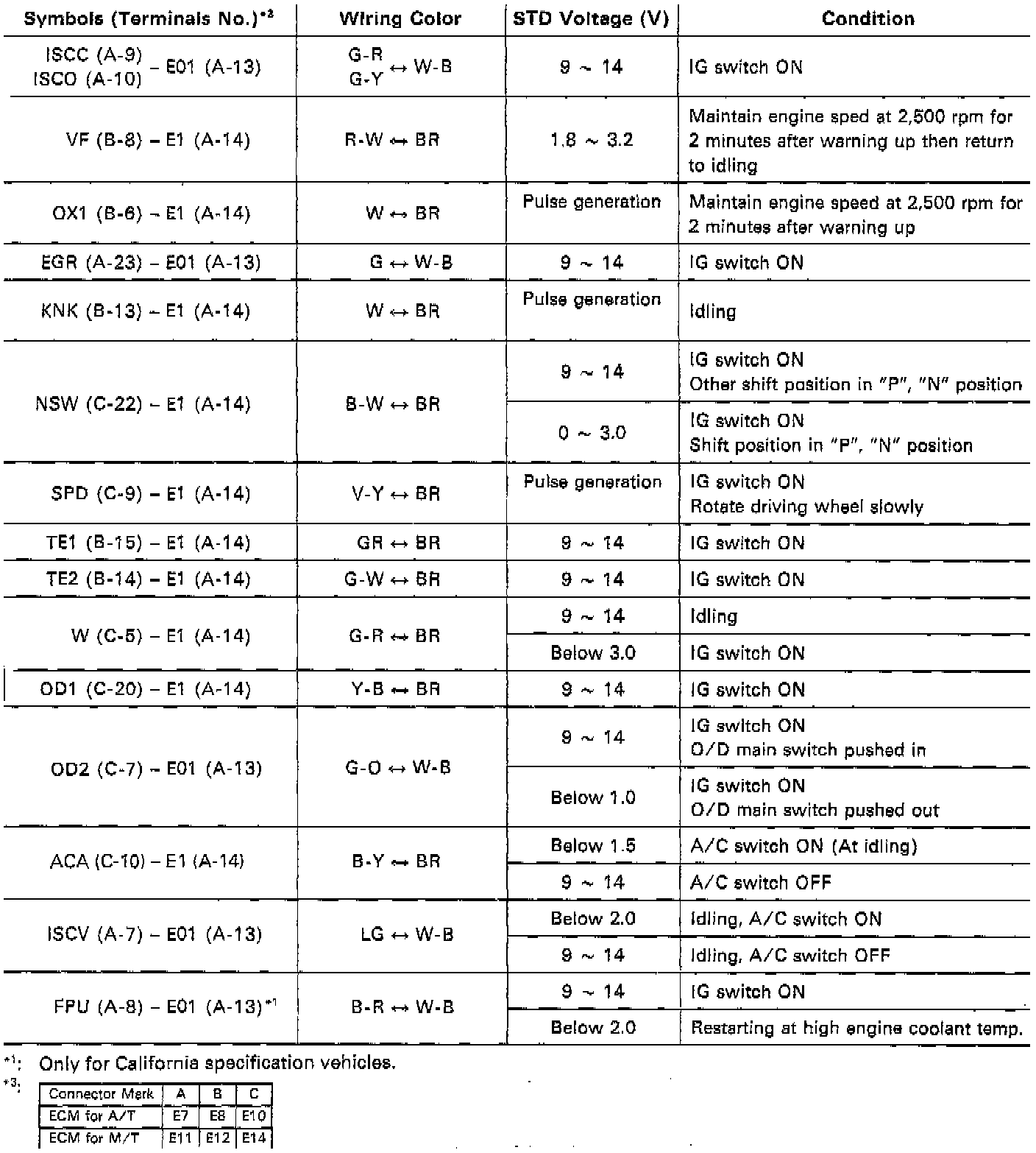 STANDARD VALUE OF ECM TERMINALS