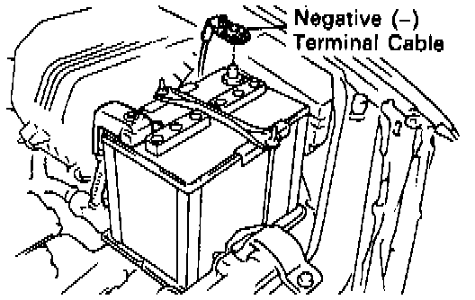 CAUTION: Work must not be started for at least 90 seconds from the time the ignition switch is turned to the LOCK position and the negative (-) terminal cable is disconnected from the battery.