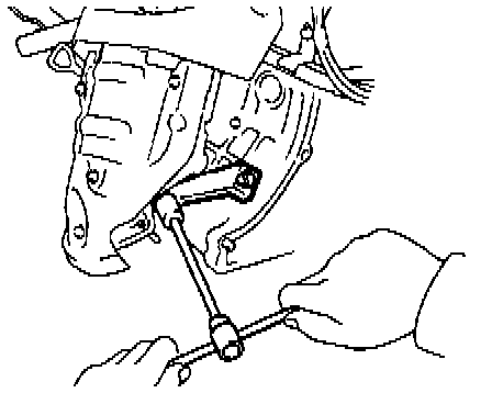 - Using a 14 mm deep socket wrench, remove the 3 nuts holding the front exhaust pipe to the warm-up three way catalytic convertor (WU-TWC).