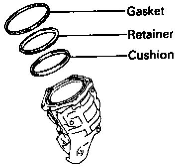 - Remove the 3 bolts, 2 nuts, WU-TWC, gasket, retainer and cushion.