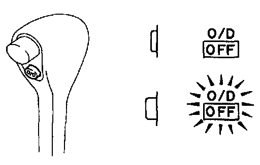 2. Check if the O/D OFF indicator light lights up when the O/D main switch is pushed out to OFF and goes off when the O/D main switch is pushed in to ON.