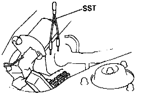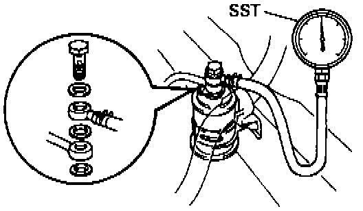 - Install the fuel inlet hose and pressure gauge to the fuel filter outlet with 3 new gaskets and the union bolt (SST 09268-45012).