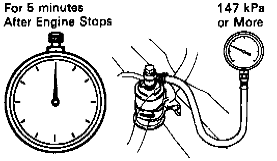 Fuel pressure: 147 kPa (21 psi) or more after 5 minutes