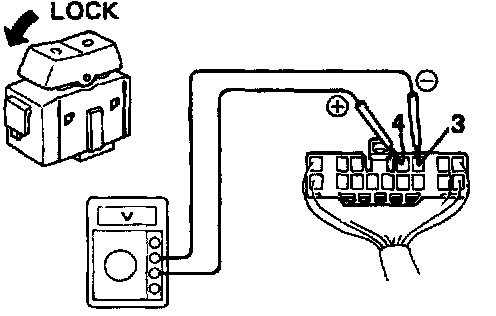 (e) Set the door lock manual switch to LOCK, check that the voltage rises from 0 volts to battery positive voltage for approximately 0.2 seconds.