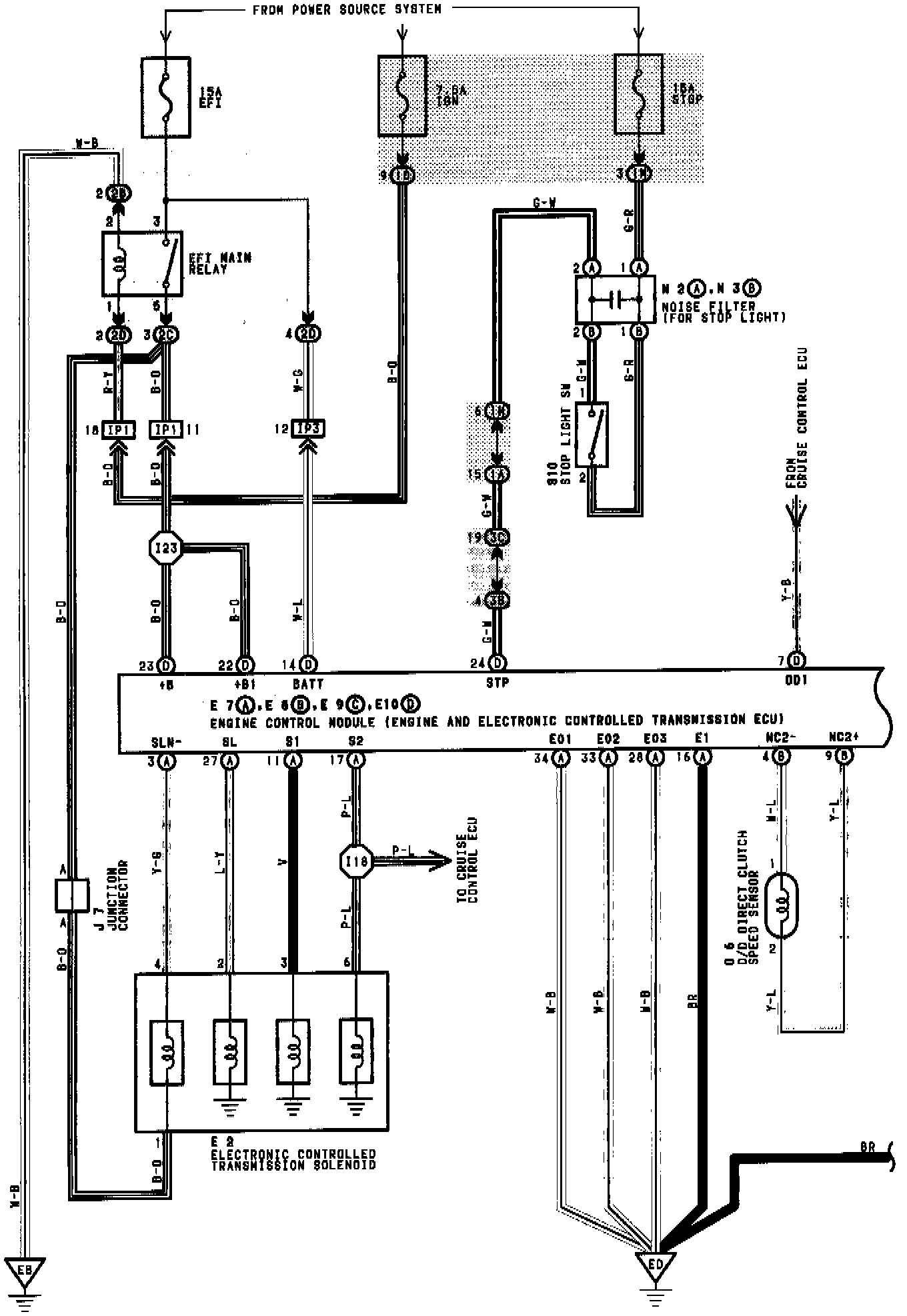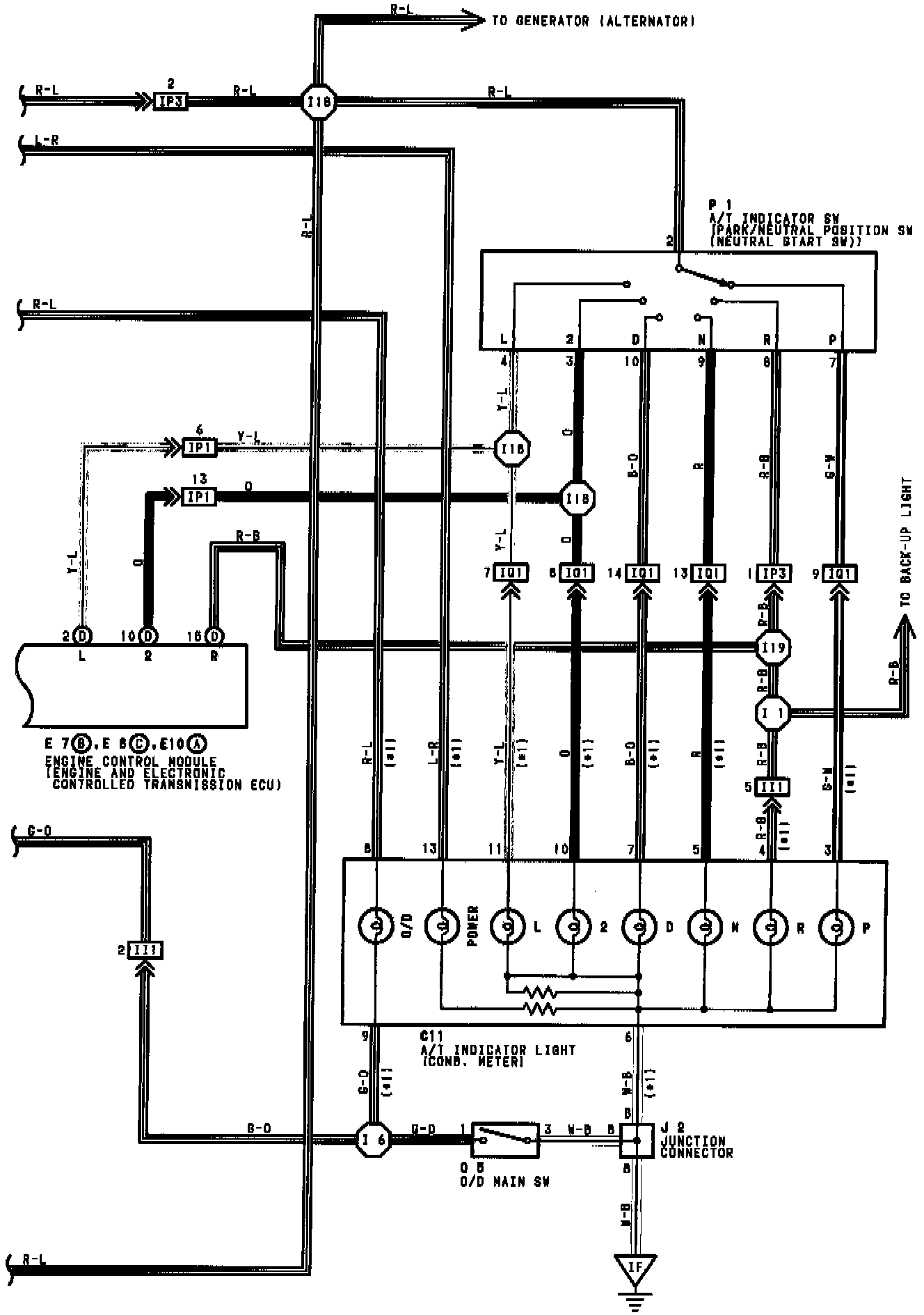 Electronic Controlled Transmission And A/T Indicator Wiring Diagram: