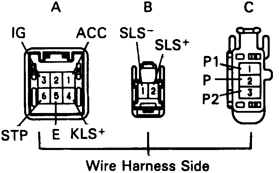 Fig. 4 Shift Lock ECU Connector Terminals.:
