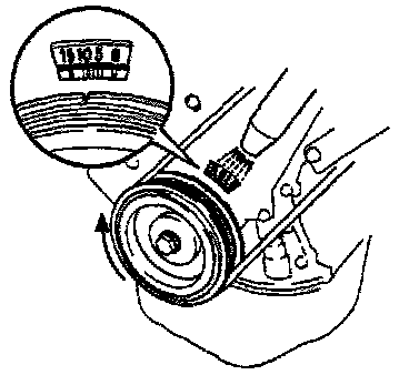 The crankshaft rotates CLOCKWISE when viewed from the pulley end.
