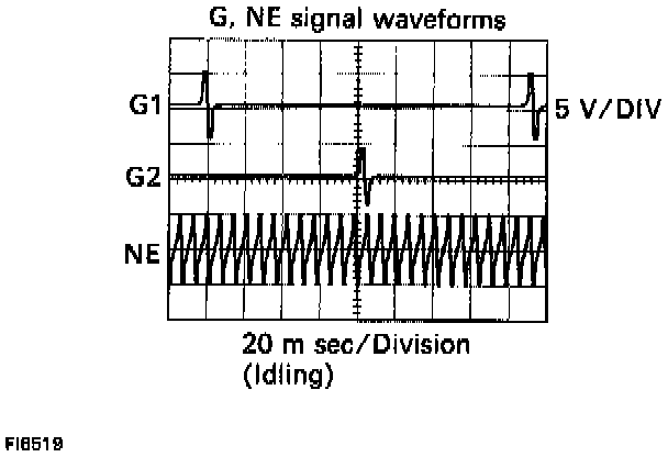 During cranking or idling, check waveforms between terminals G1 (G2; NE) and G- of ECM.