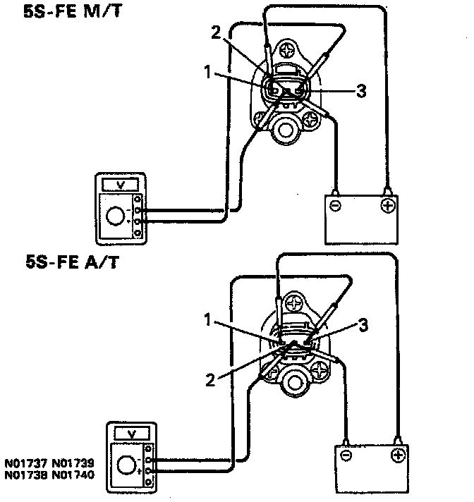 INSPECTION PROCEDURES1. Connect the positive (+) lead from the battery to terminal 1 and negative (-) lead to terminal 2.