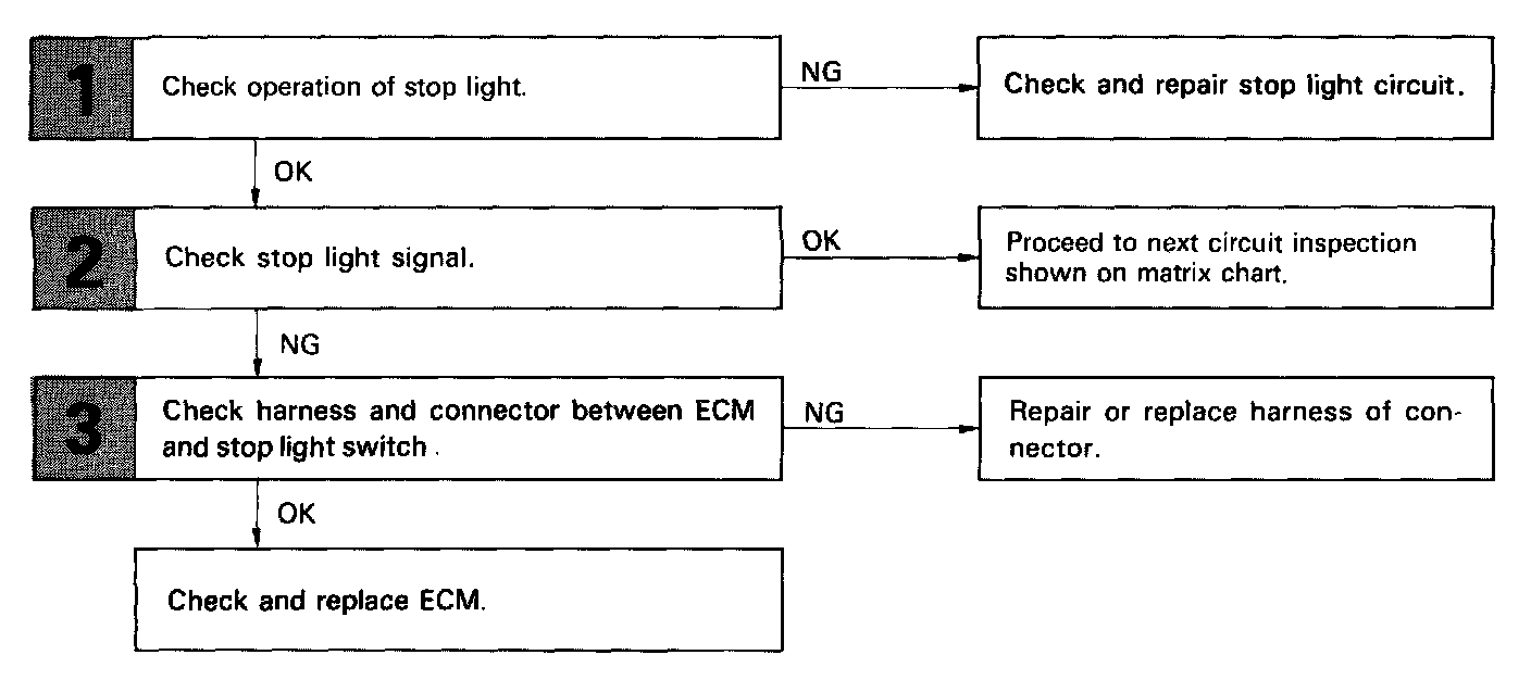 The purpose of this circuit is to prevent the engine from stalling when the brakes are suddenly applied while driving in lock-up condition.
