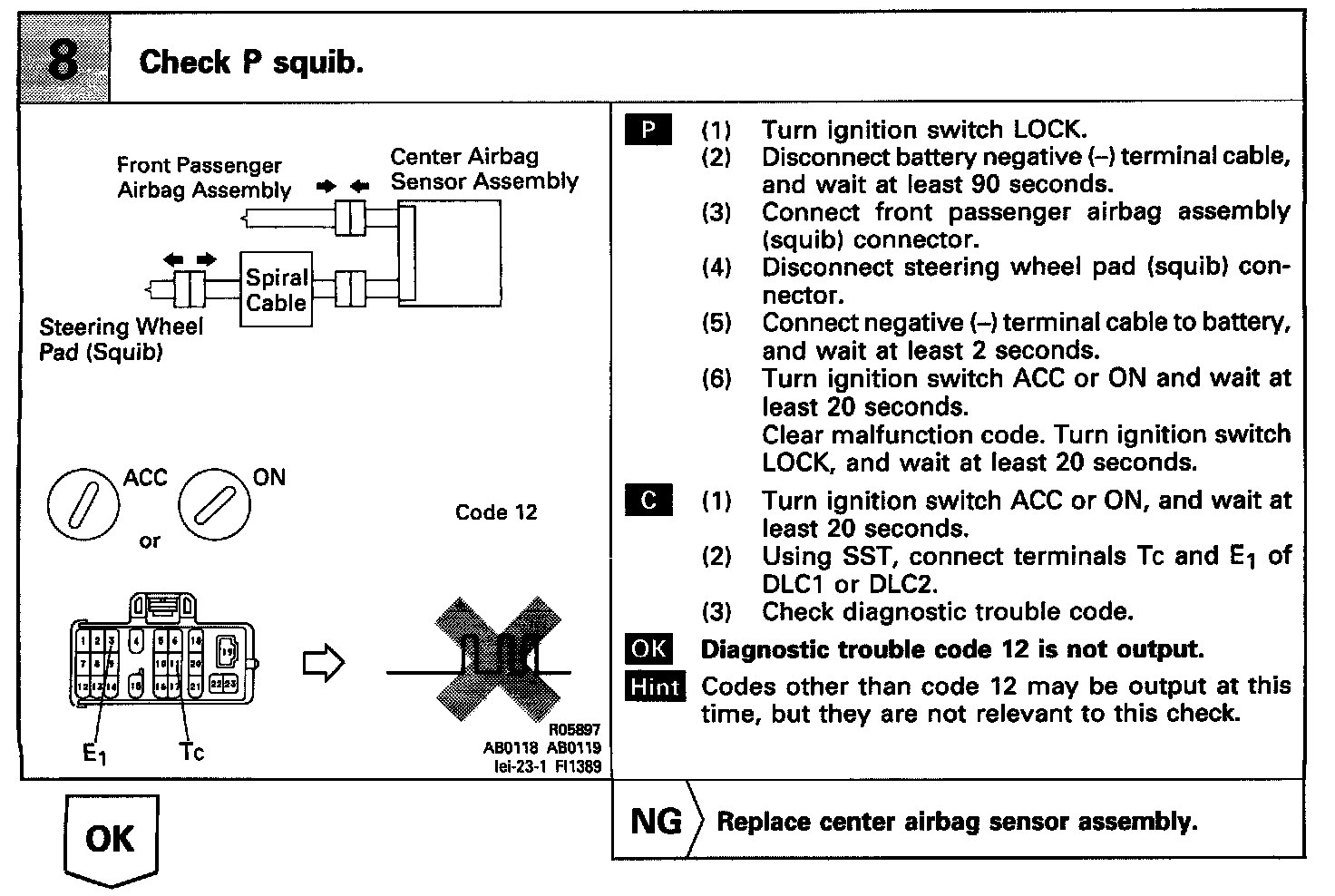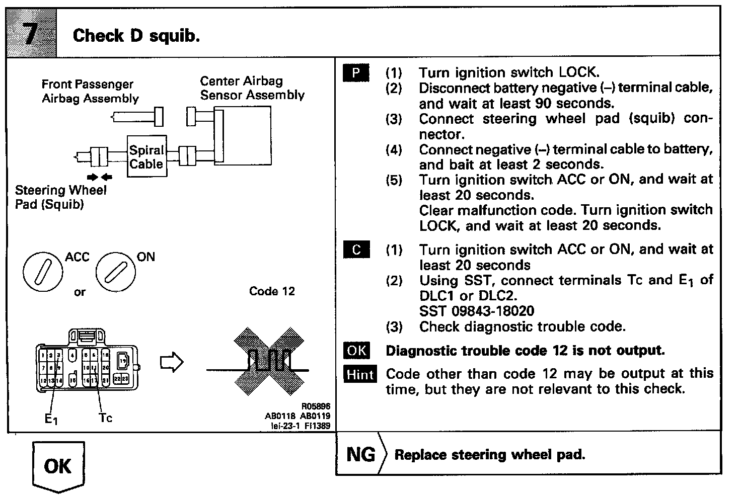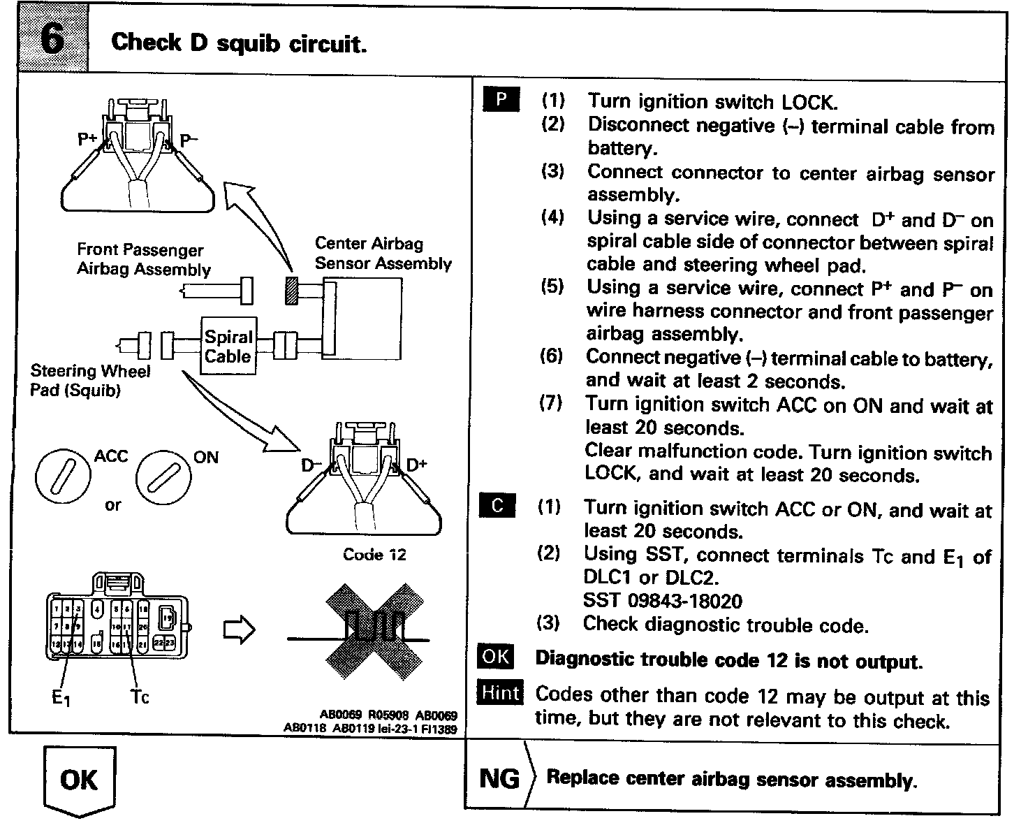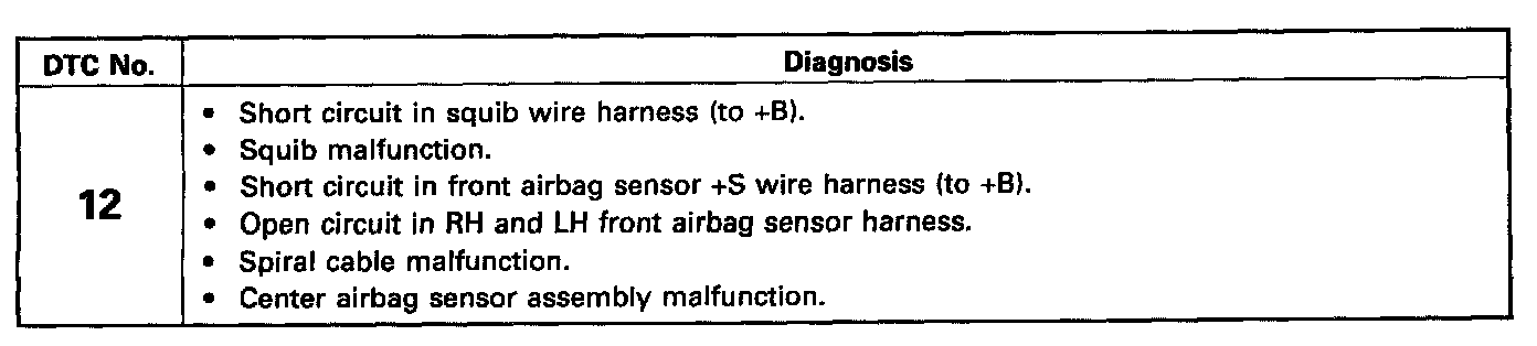 DTC 12 SHORT IN SQUIB CIRCUIT (TO B +)CIRCUIT INSPECTION
