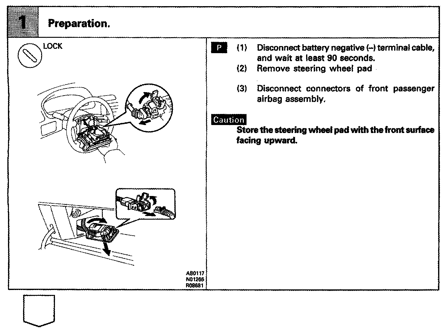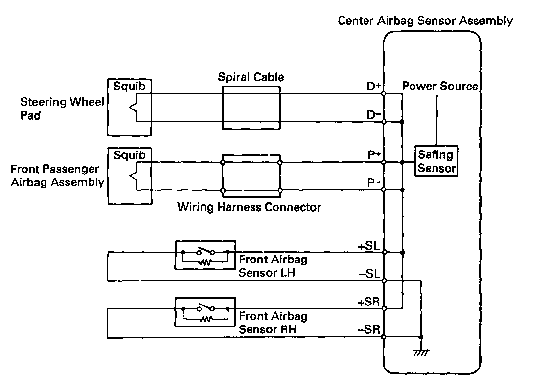 The squib circuit consists of the center airbag sensor assembly, spiral cable and the steering