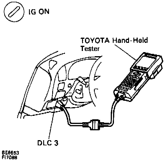 - Connect the OBDII scan tool or TOYOTA hand-held tester to the Data Link Connector 3.