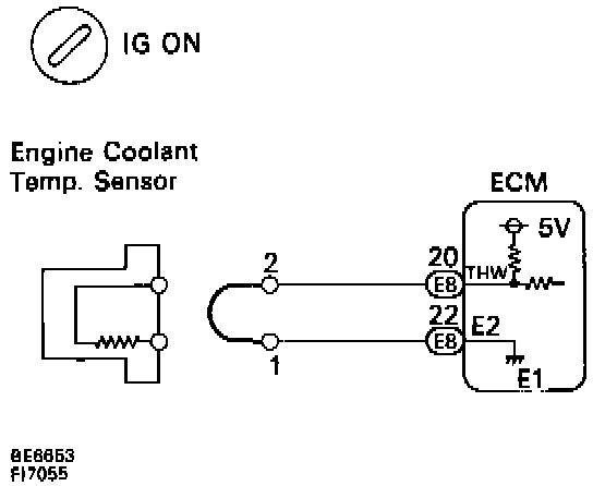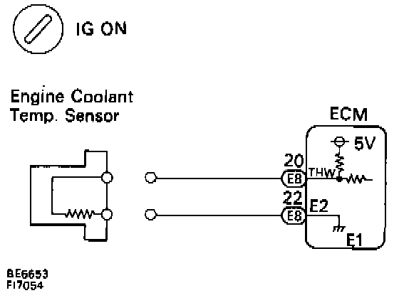 - If OK open in harness between terminals E2 or THW, repair or replace harness.