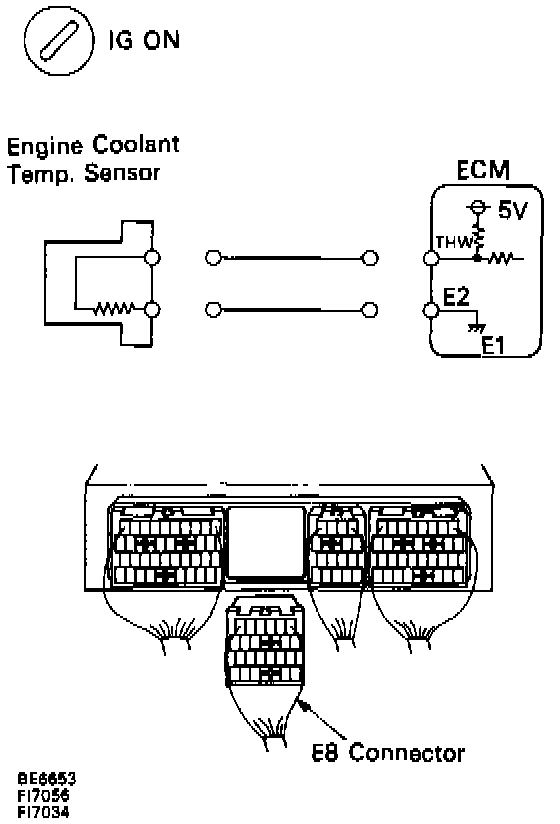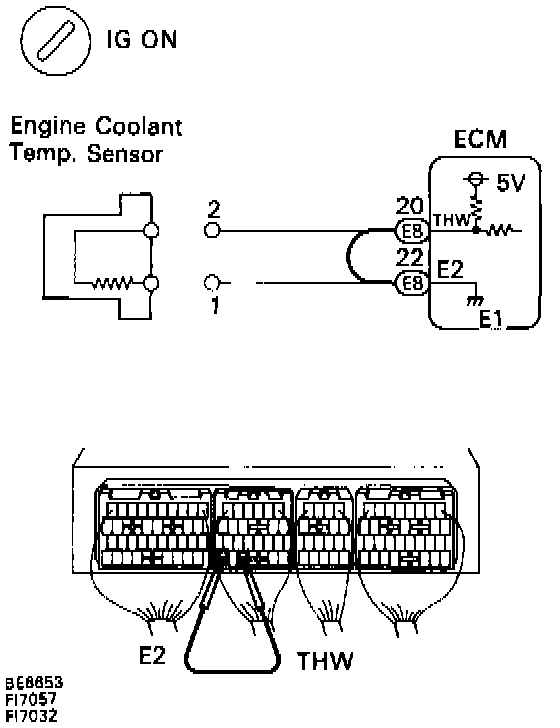 - Connect between terminals THW and E2 of Engine Control module E8 connector.