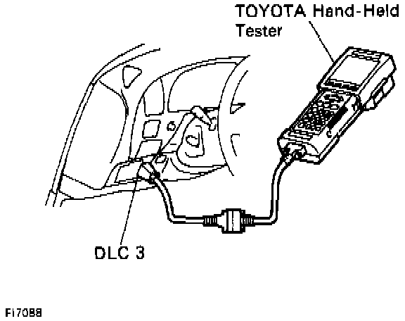 - Connect the OBDII scan tool or TOYOTA hand-held tester to the Data Link Connector 3.