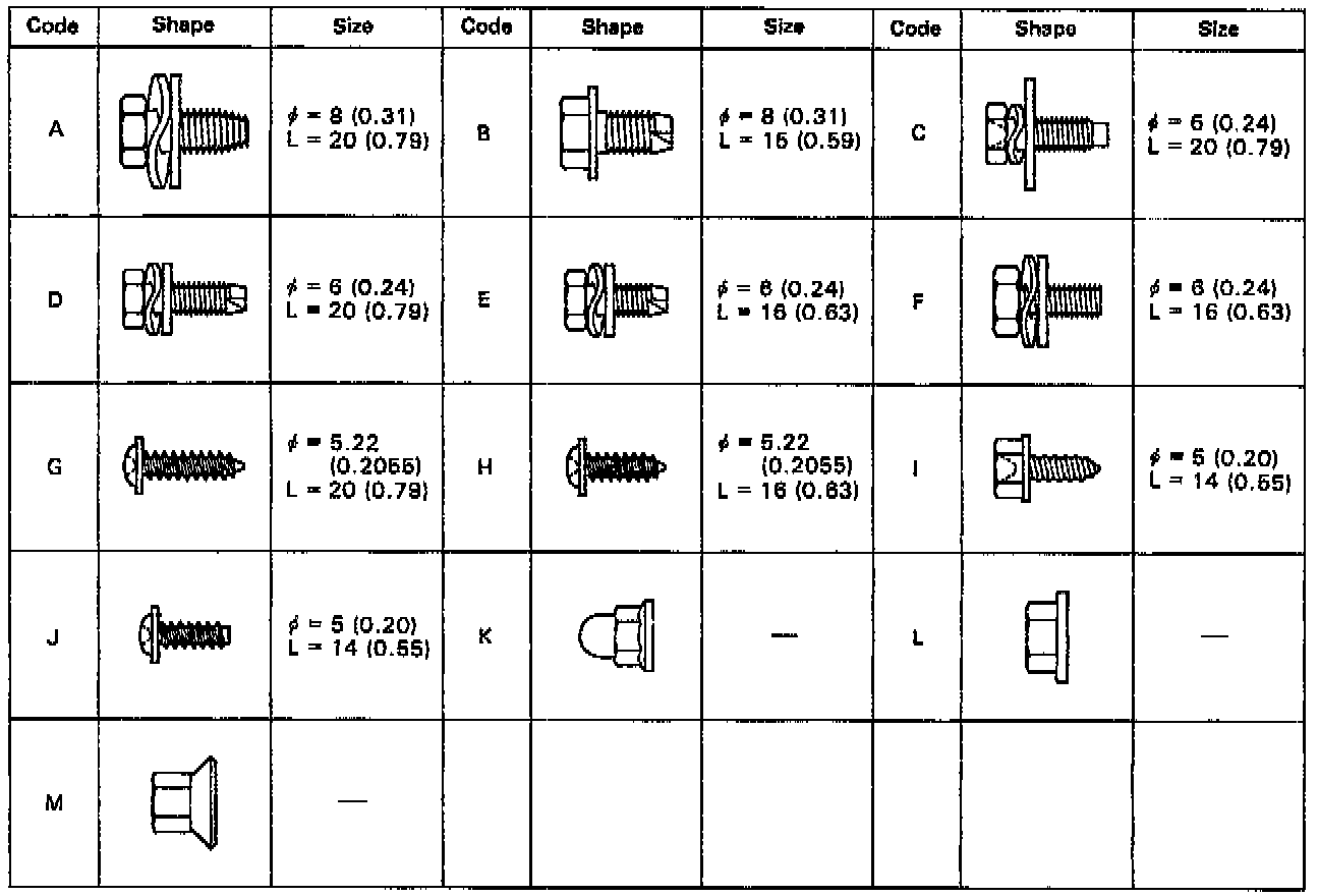 NOTE: Screw sizes in the illustration are indicated using the code for removal and installation of instrument panel.