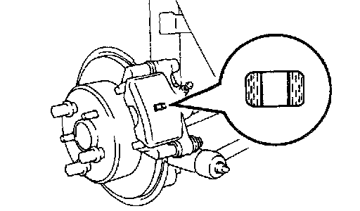 Check the pad thickness through the caliper inspection hole and replace pads if not within specification.