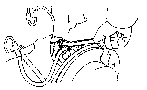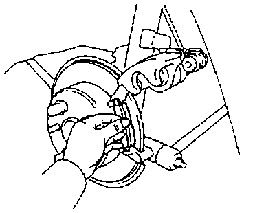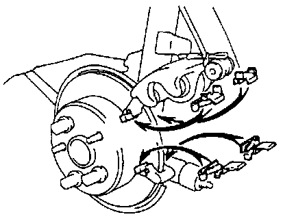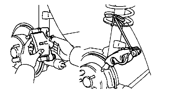 HINT: Do not disconnect the flexible hose from the caliper.