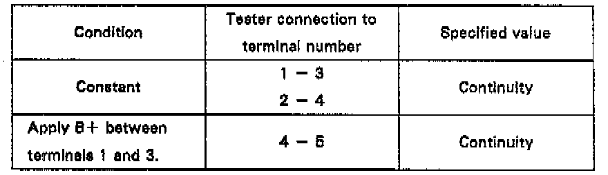 If continuity is not as specified, replace the relay.