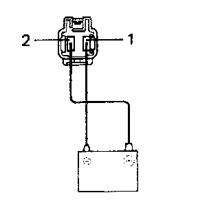 Connect the positive (+) lead from the battery to terminal 2 and the negative (-) lead to terminal 1, then check that the motor operation is smooth.